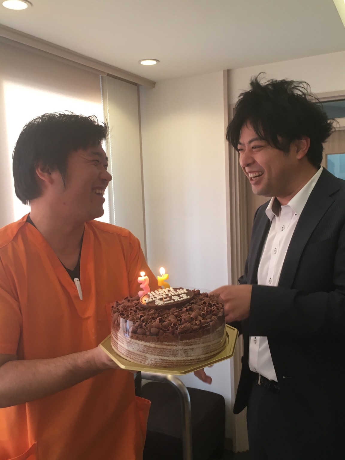 ケーキとプレゼントを持って直撃しました!(/・ω・)/(/・ω・)/