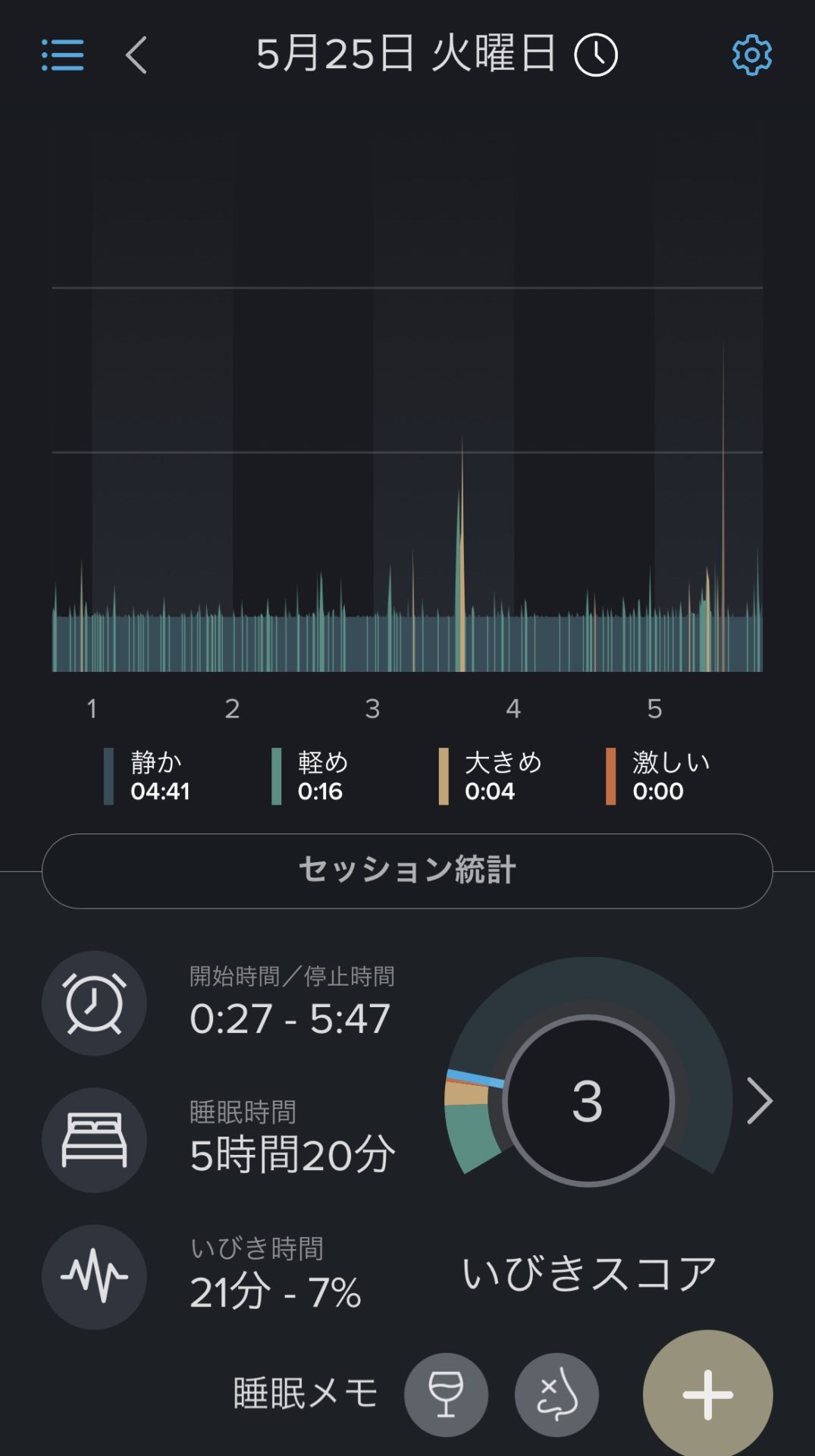 ここ最近のいびきアプリをみると