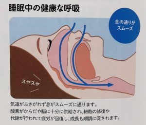 鼻が詰まっていたりお口を開けて寝る癖があると舌がだらんと垂れて下がりやすく気道を塞ぎやすい
