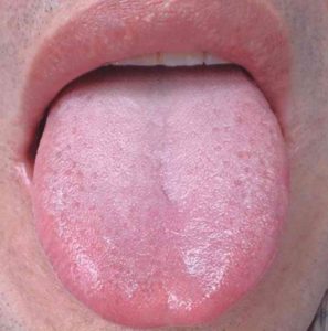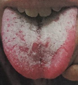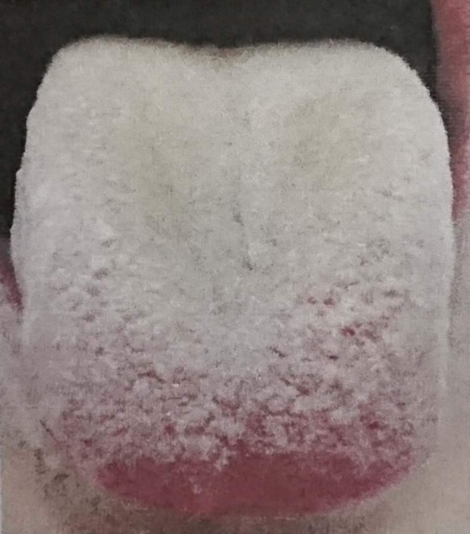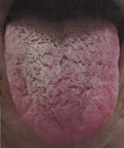 ●舌苔が白く、乾燥している︰白乾苔(はくかんたい)