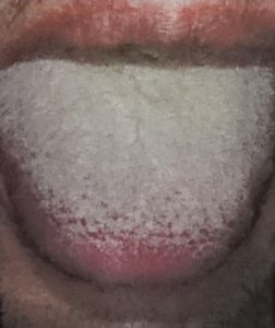 舌上皮の乳頭間に細菌や食べカス・粘膜の上皮細胞のカス・汚れ等が付着して、舌表面が苔が生えたように白く変色したように見えるものです。