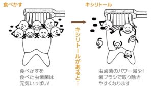 歯垢(プラーク)中のむし歯菌を減少させ、むし歯の原因となる酸を作らせない働きがあり、甘さにより唾液をより多く出させ、唾液の働きにより虫歯になりにくい口腔内環境をつくる効果があります✨
