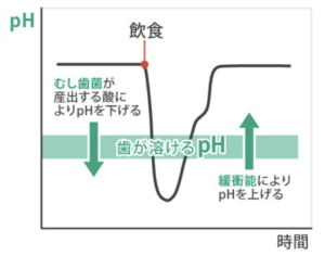 ちなみに、皆さんがお持ちの唾液には口の中を中和する力「緩衝能」があります。