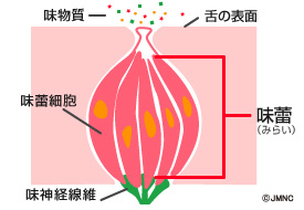 舌に「味蕾(みらい)」という味を感じる細胞があるからです。